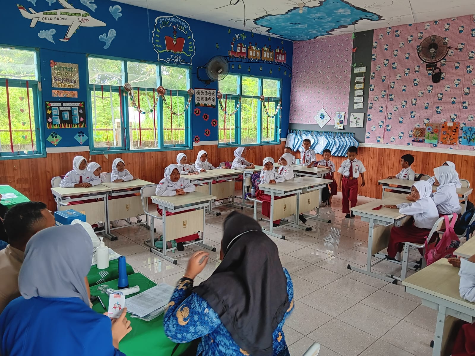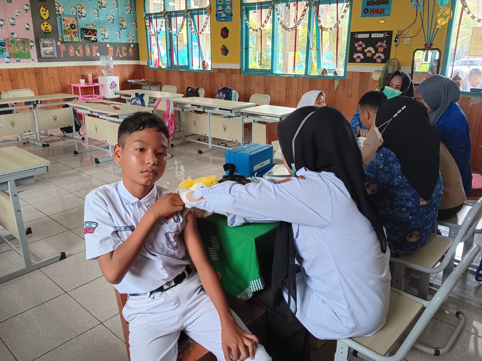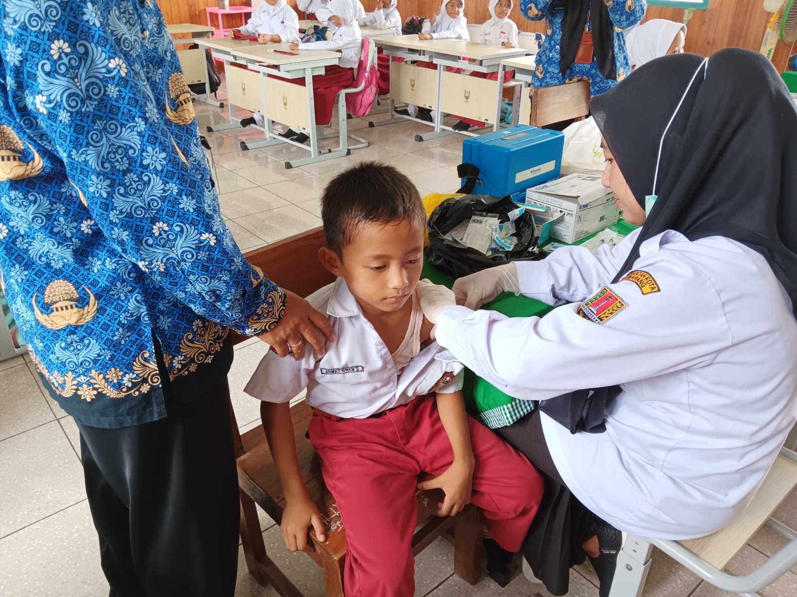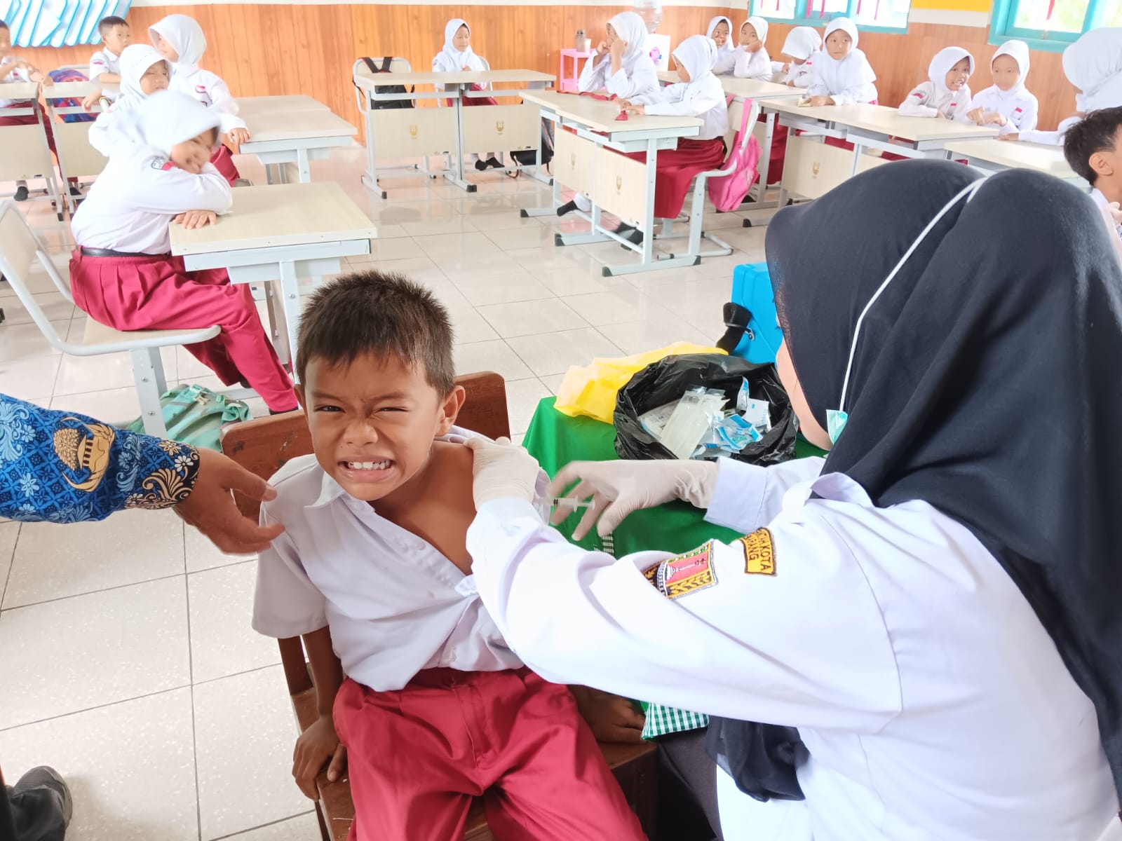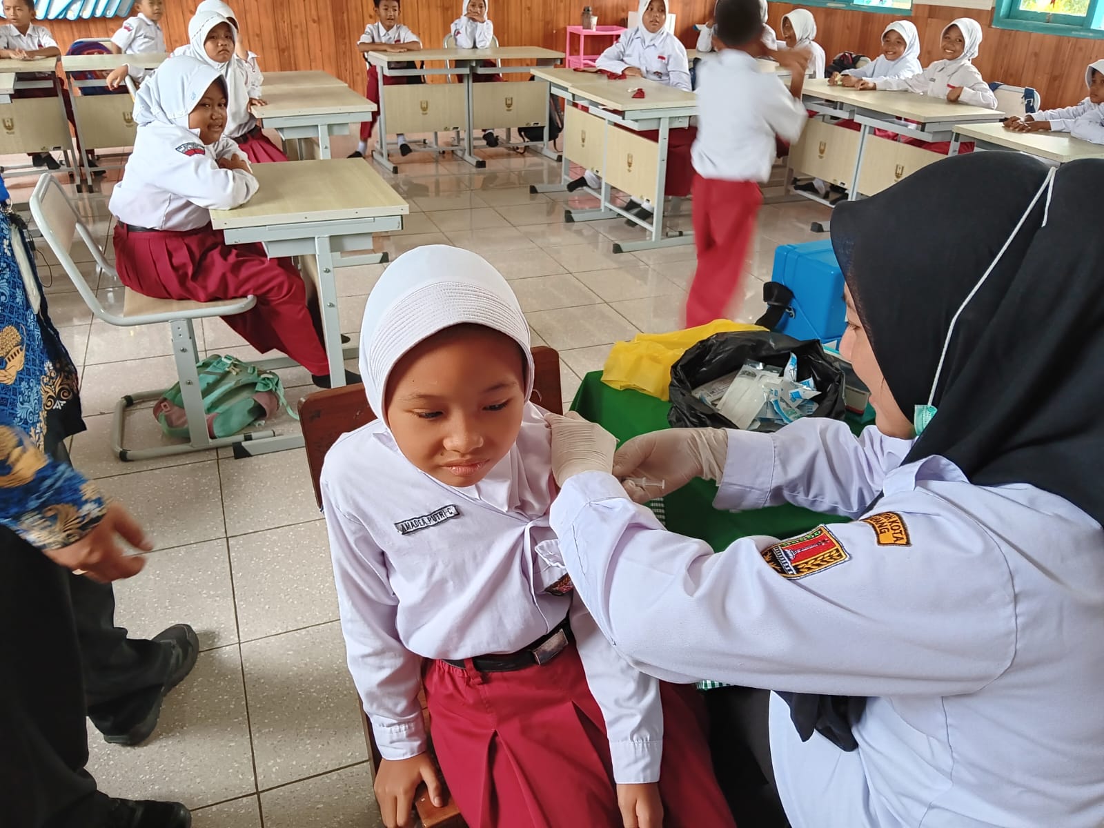 Pelaksanaan imunisasi dilakukan oleh tenaga kesehatan dari UPTD Puskesmas Mangkang, dengan didampingi oleh guru-guru dan wali kelas untuk memastikan proses berlangsung secara tertib dan kondusif. Seluruh peserta didik mengikuti rangkaian kegiatan dengan baik, mulai dari proses pendataan, pemeriksaan awal, hingga pelaksanaan imunisasi.