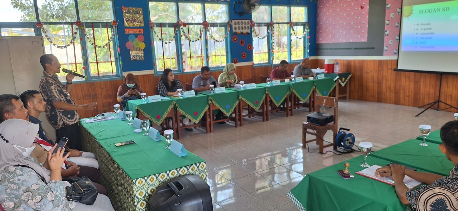 Sambutan sekaligus paparan tentang Adiwiyata SD Negeri Mangunharjo Tugu oleh Kepala Sekolah Bapak Drs. Dono Setiawan, M.Pd.